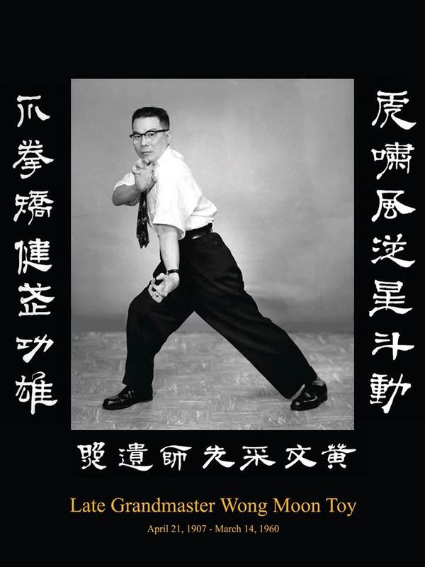 Wong Moon Toy was born in the Guan dong province on April 21st, 1907. He began training in kung fu at an early age. When he turned 20, he had already mastered Hung Gar and Mi Chung I and was accepted as a disciple under his Uncle Wong Bil Hong in Hark Fu Moon, Black Tiger style. Although he had mastered two other systems, training in Hark Fu Moon was notably arduous and rigorous. To reach the standards of his Uncle and of the Hark Fu Moon system, he mastered mental and physical discipline accompanied by great endurance. His Uncle then took him up the Lor Fow Mountains for seven years of intense and strenuous training. Upon returning from the mountains, he was a fully developed genuine martial artist, forged by hard work and discipline. Away from commercialism, devoid of outside distractions and influenced by a highly evolved teacher tempered him into an unyielding but modest man. Wong Moon Toy moved to New York City in the early 1900's. Wong Moon Toy taught Fu Jow Pai only to seven disciples. It was there he and the seven disciples opened Fu Jow Pai to the public on October 1st, 1957. A few years later he passed the system on to Wai Hong Ng. On March 14th, 1960 Wong Moon Toy passed away of a liver disease.